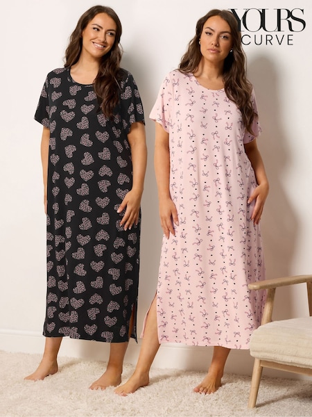 黑色 - Yours Curve Midaxi Nightdress 2 Pack