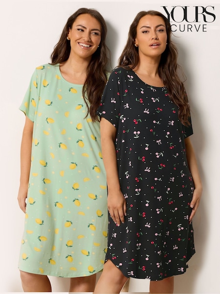 Yours Curve Soft Touch Dipped Back Nightdresses 2 Pack
