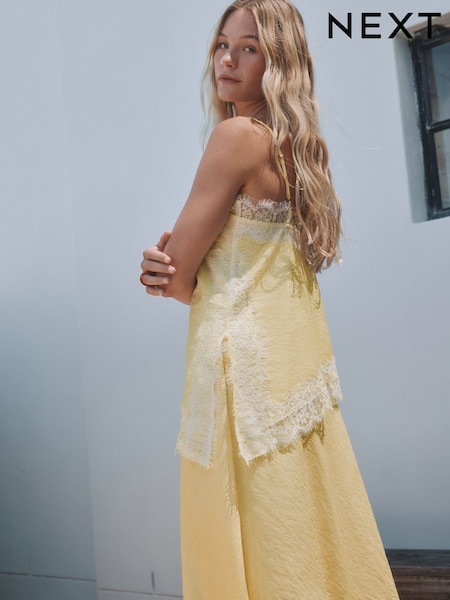 黃色 - Asymmetric Cami Lace Top