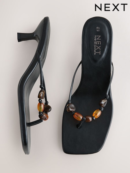 黑色 - Forever Comfort® 珠飾夾腳高跟涼鞋