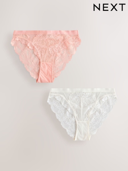 玫瑰色/奶油色 - 蕾絲內褲 2 件裝