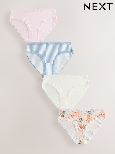 Cream/Green/Tulip - Microfibre And Lace Knickers 3 Pack