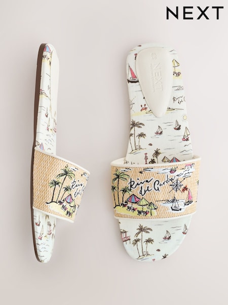 白色人造皮。 - Lipsy Flared Heel Slip On Mid Heel Mule Sandals