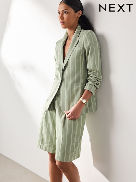 綠色/米色條紋 - N.Premium 單襟亞麻西裝褸