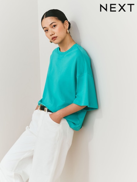 藍綠色 - 寬鬆版型手肘袖圓領 T 裇