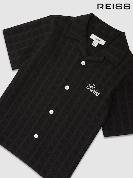 黑色 - Reiss Sycamore Textured Logo-Embroidered Shirt