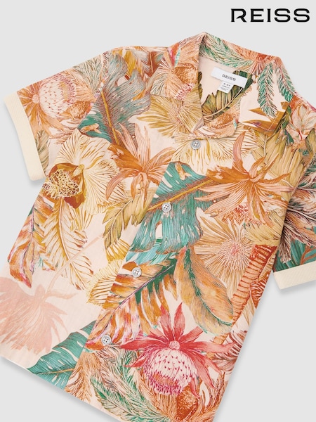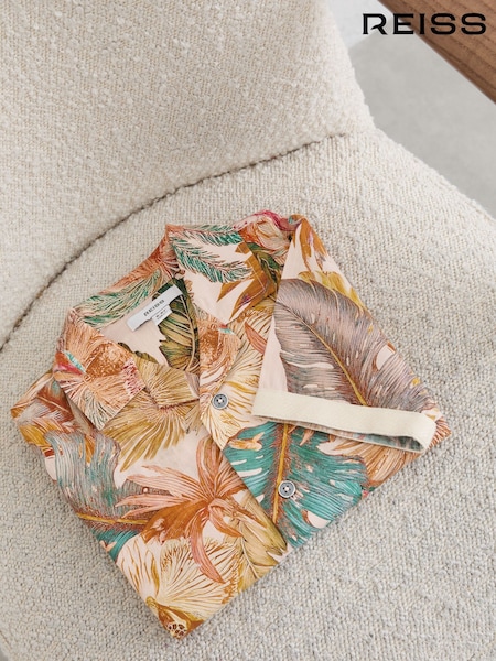Reiss Armond Cotton Tropical-Print Cuban-Collar Shirt