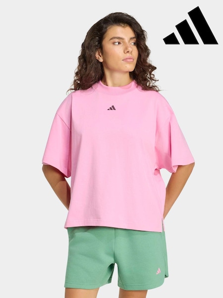 粉色 - adidas 3-Stripe Studio Oversize Graphic T-Shirt