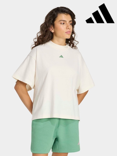 白色 - adidas 3-Stripe Studio Oversize Graphic T-Shirt