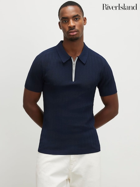 River Island Slim Fit Textured Zip Polo Shirt