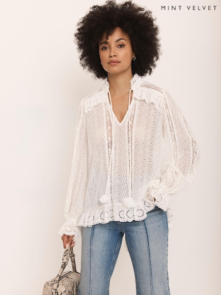 Mint Velvet Broderie Trim Longline Blouse