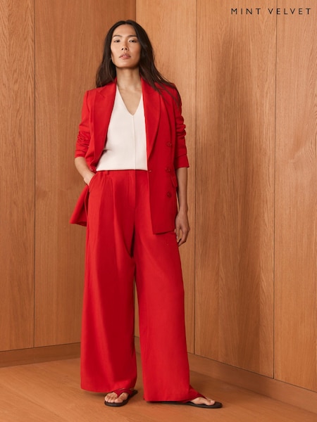 紅色 - Mint Velvet 側條紋寬腿長褲