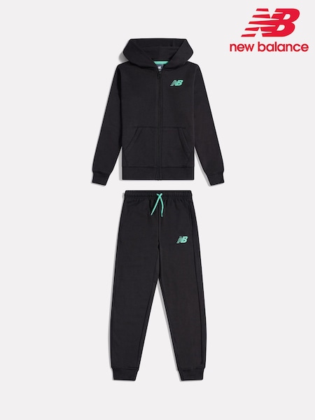 黑色 - New Balance Linear Logo FT Zip Through Hoodie & Joggers Set