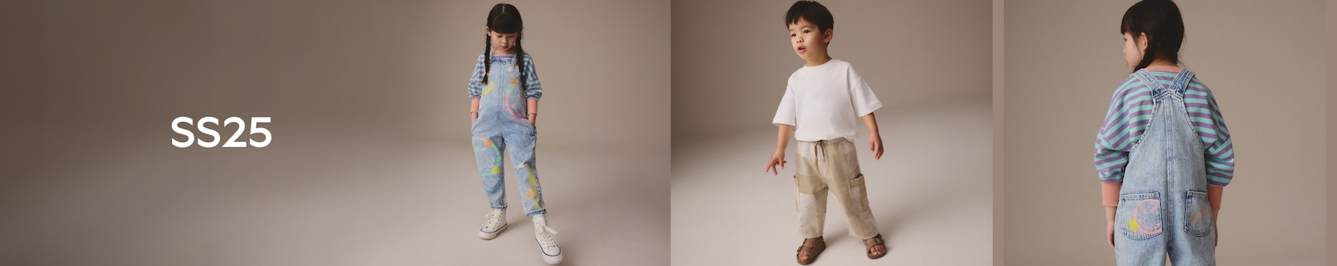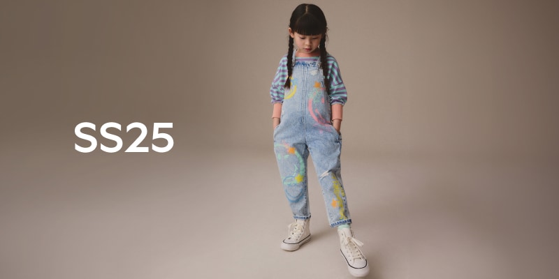 中藍色丹寧 - 闊腿鬆緊腰工裝 100% 棉牛仔褲(3 個月-7 歲)