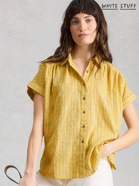 黃色 - Yours 大呎碼泡泡紗條紋襯衫