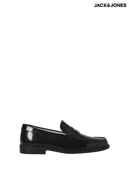 JACK & JONES Black Leather Penny Loafers