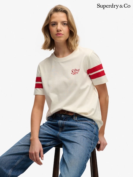 Superdry White Slub Embroidered V-Neck T-Shirt