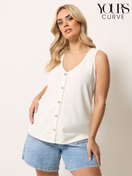 Yours Curve White Broderie Anglaise Tiered Vest Top