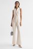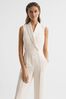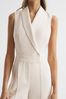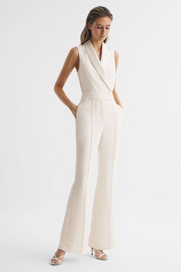 Inspired by our 1970s style philosophy, the ivory Dani jumpsuit brings traditional tuxedo dressing to the modern day. It’s fitted with shawl lapels for a formal note, whilst a sheer panel adds feminine allure. Refined details tailor the look, and the profile is cinched at the waistline. Complete the edit with strappy heels. Shawl lapels. Sleeveless. Wrap design. Sheer detailing to reverse. Front chest darts. Pinched front seams. Jetted pockets to reverse. Flared leg. Lined.