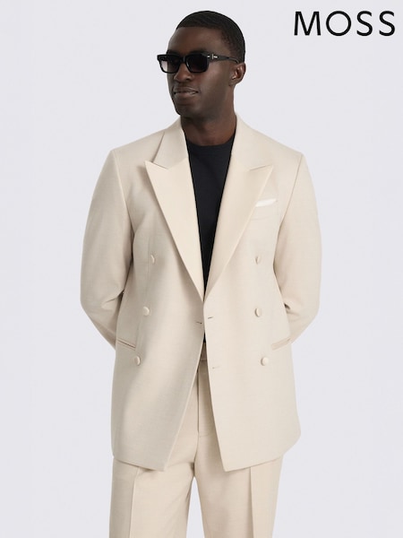 MOSS Brown Relaxed Fit Flannel Double Breasted Suit Jacket