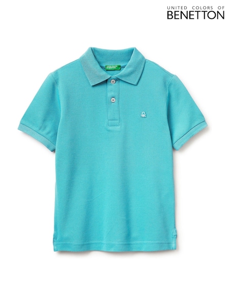 Benetton Blue Short Sleeve Pique Polo Shirt