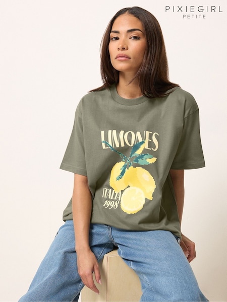 PixieGirl Petite Green Lemons Oversized T-Shirt