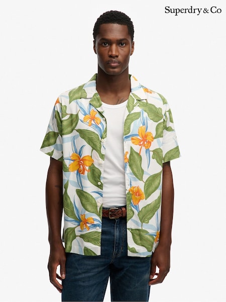 Superdry White Hawaiian Print Short Sleeve Shirt