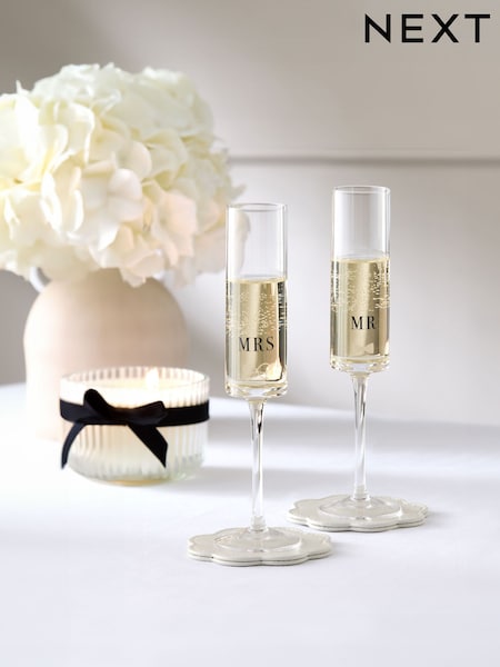 Set of 2 Monochrome Mr and Mrs Wedding Flute Glasses