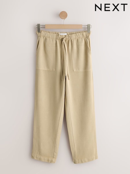 Love & Roses Tan Brown Faux Suede Wide Pintuck Crop Trousers