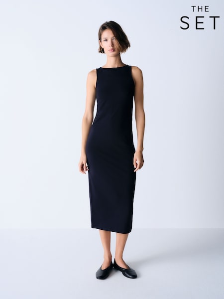 The Set 3 Pack Boat Neck Midi Dresses Dark Navy/Plum/Taupe