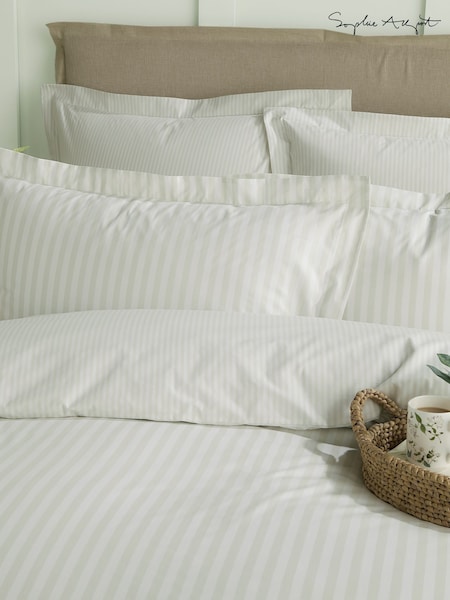 Sophie Allport Set of 2 Mint Green Uppingham Stripe 200 Thread Count Pillowcases