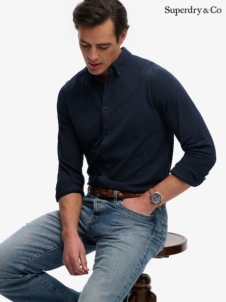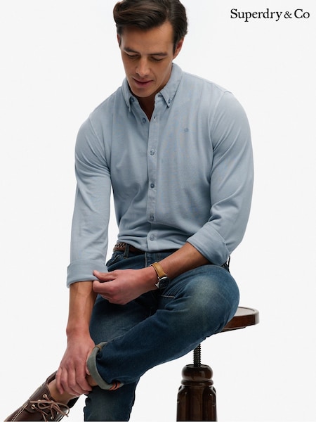 Superdry Blue Vintage Destroy Pique Long Sleeve Shirt