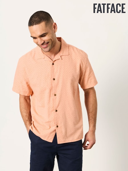 FatFace Coral Pink Short Sleeve Relaxed Fit Garment Dye Geo Textured Shirt