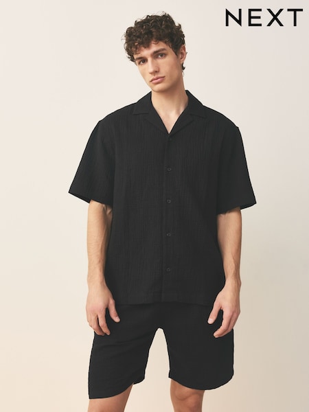 Black Cheesecloth Shirt and Shorts Set