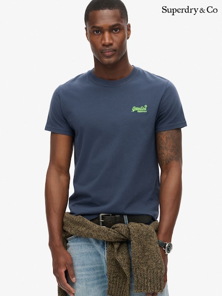 Superdry Blue Essential Stacked Logo Embroidered T-Shirt