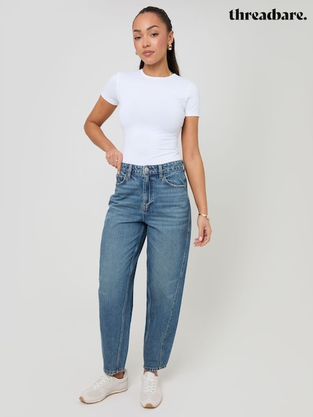 Threadbare Mid Blue Petite Barrel Leg Jeans