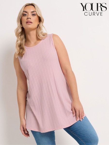 Yours Curve Pink Ribbed Soft Touch Vest