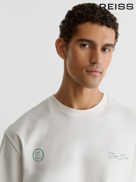 Putih - Kaos Reiss Rainer Monogram Bordir Potongan Longgar