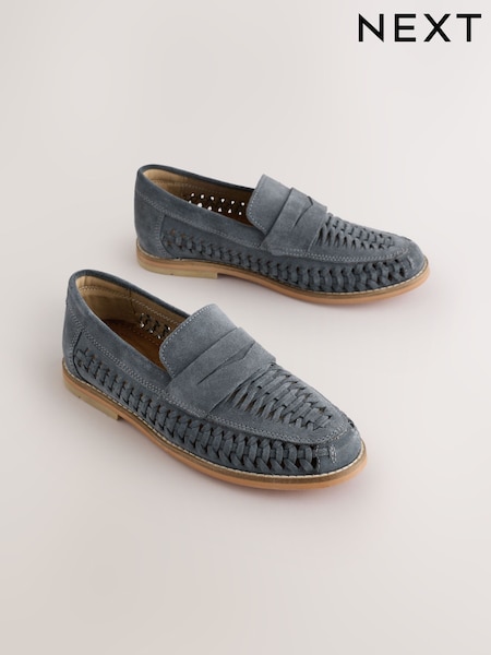 Blue Suede Woven Loafers