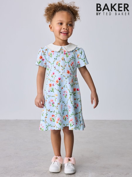 Baker by Ted Baker Blue Trellis Print Floral Ponte Dress