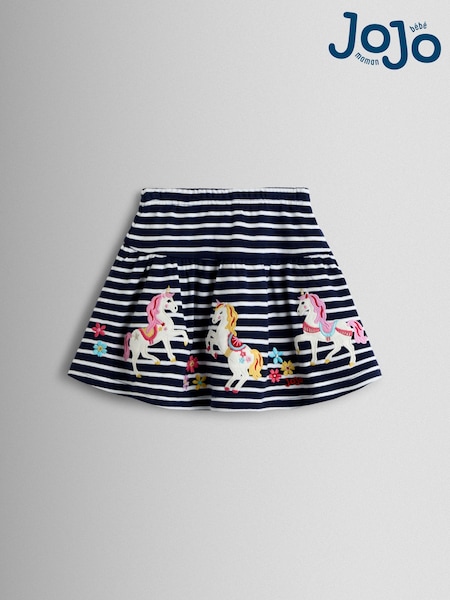 JoJo Maman Bébé Navy Blue Unicorn Appliqué Skort