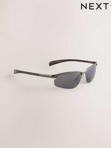 Gunmetal Grey Wrap Around Rectangular Polarised Sunglasses