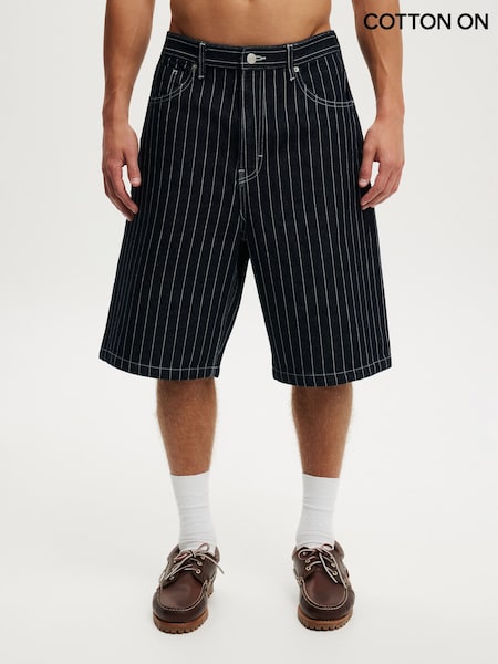 Cotton On Pinstripe Blue Super Baggy Jort Shorts