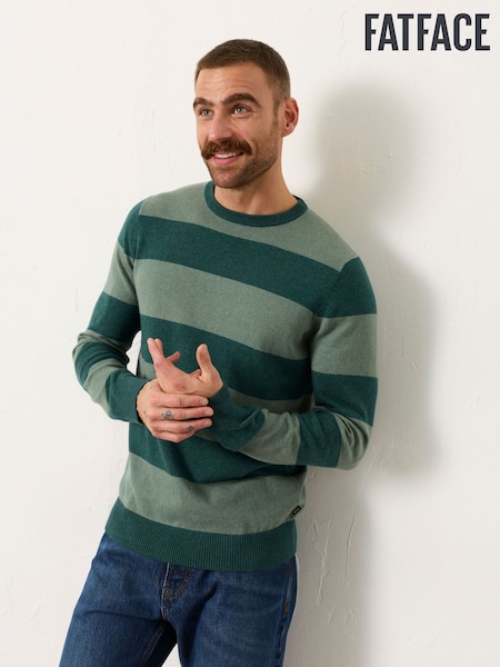 FatFace Rye Emerald Green Tonal Stripe Crew Jumper