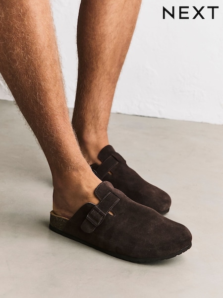 Friends Like These Taupe Brown Faux Suede Slip-On Comfort Stud Detail Buckle Casual Footbed Clogs