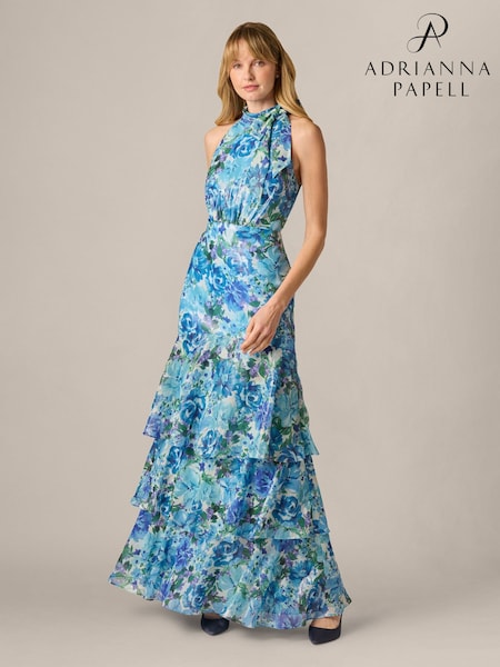 Abercrombie & Fitch Blue Printed Halter Neck Maxi Dress