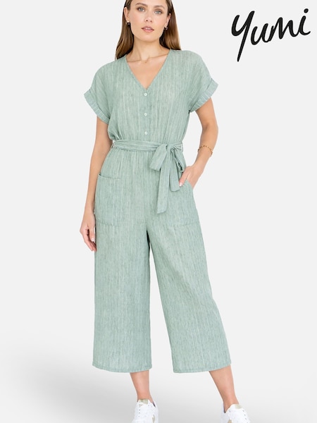 Yumi Green V-Neck Kimono Sleeve Jumpsuit