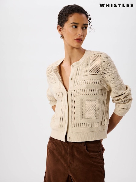 Whistles Cream Crochet Detail Cardigan