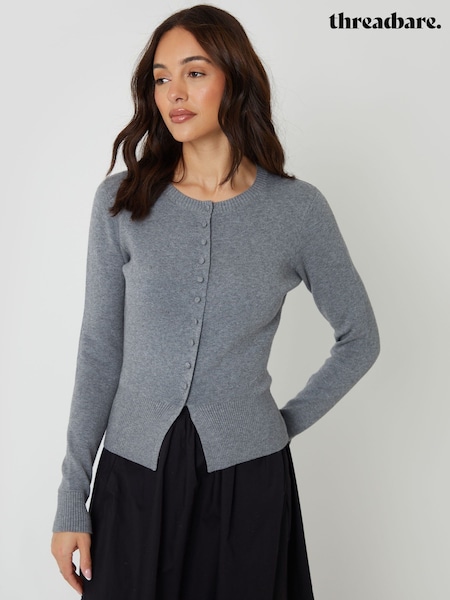 Threadbare Grey Valentines Crew Neck Structured Knitted Cardigan