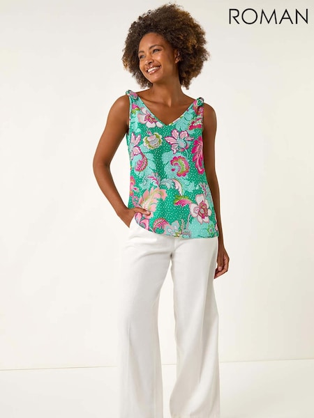 Emerald Green Lace Cutout Trim Satin Cami Top